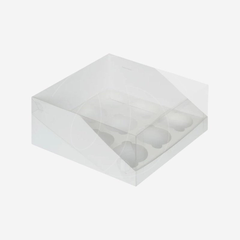 Доставка Коробка на 9 капкейков с прозрачной крышкой белая из магазина в вашем городе: