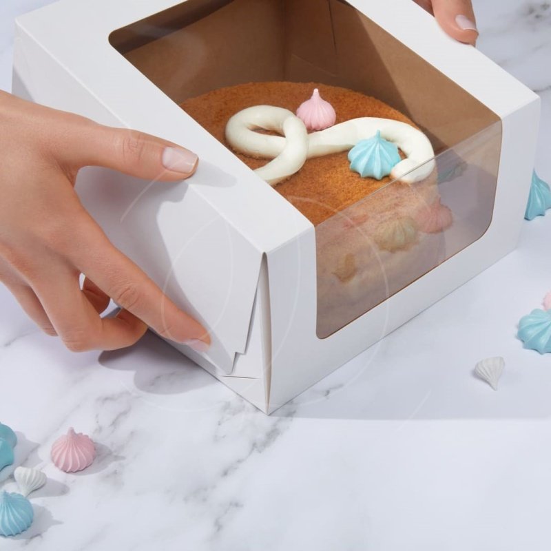 Доставка Коробка для торта с большим окном белая 18х18х10 см из магазина в вашем городе: