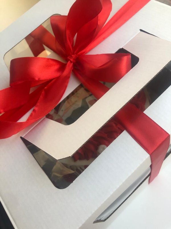 Коробочка из очень плотного картона, собирается легко, окошко отличное. Тортик нужно в коробочку заводить с боку. Очень нравятся эти коробки. Места дома занимают мало, так как они в разобраном виде плоские. Можно не перевязывать лентой.