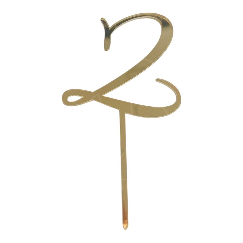 Топпер декоративный акриловый "Цифра 2 курсив" Золото
