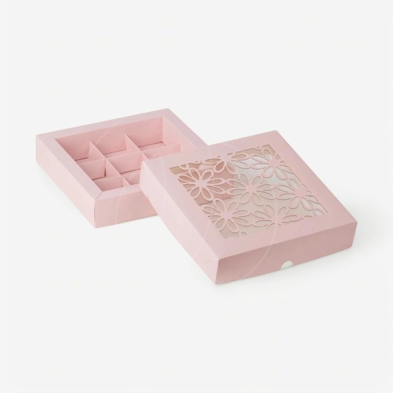 Доставка Коробка на 9 конфет с окном "Ромашка" розовая из магазина в вашем городе: